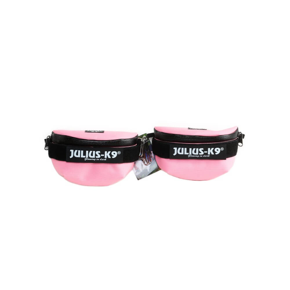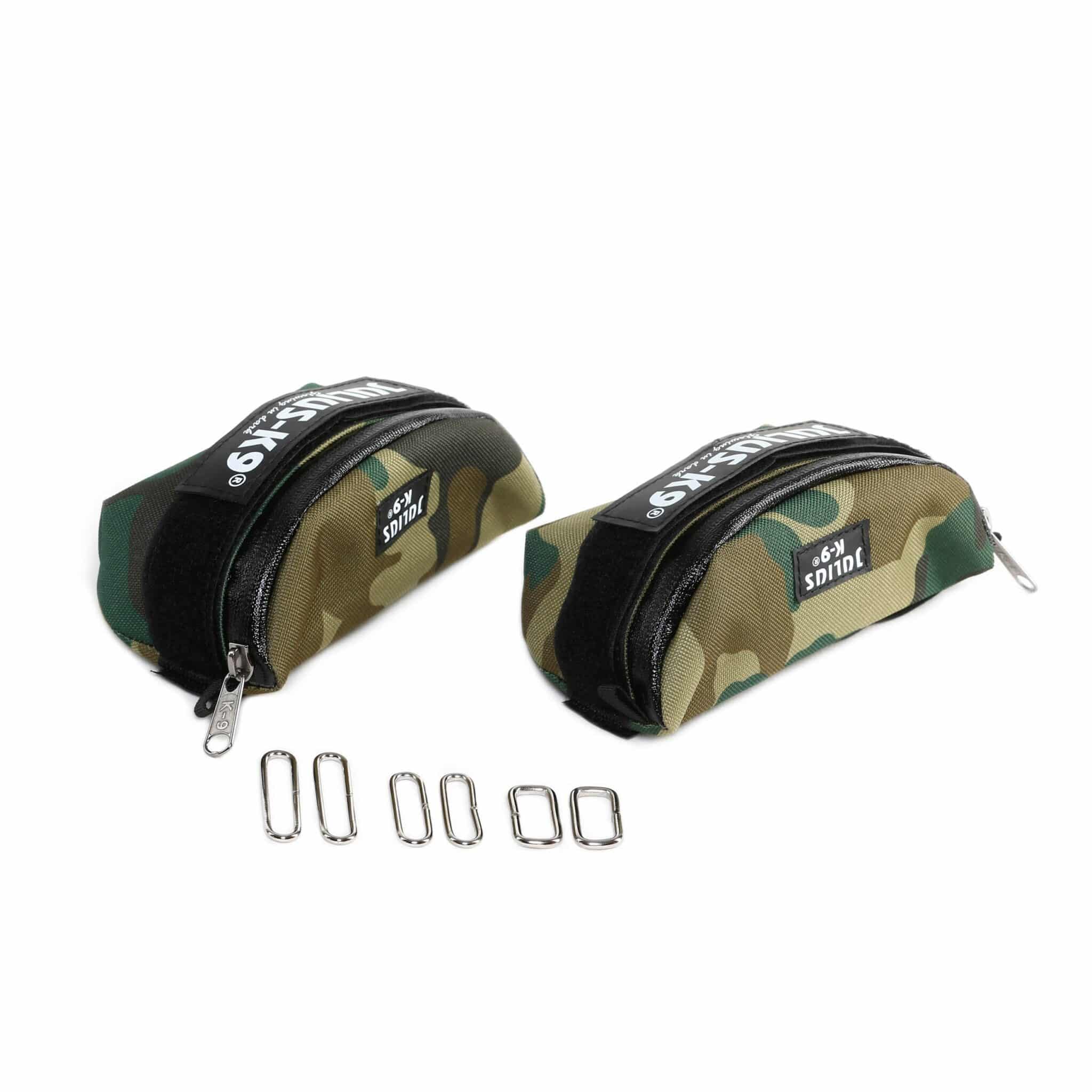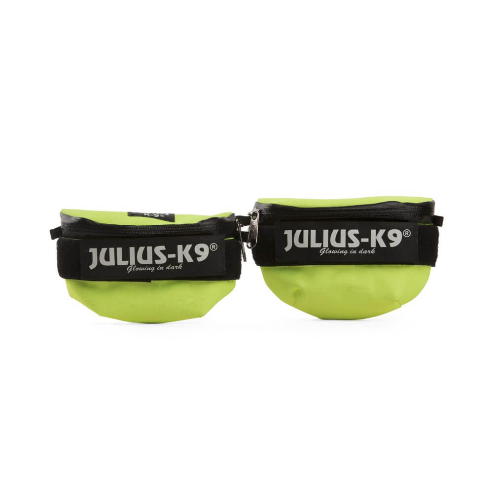 Con cada bolsa lateral viene con un parche JULIUS K9 intercambiable de 110×30 mm y se incluyen varios tamaños de acoples para que puedan abrocharse correctamente y adaptarse a cualquier arnés.